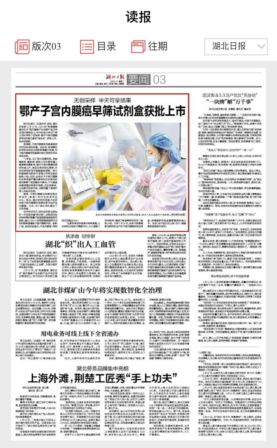 制造翘楚 建功支点丨无创采样 半天可拿结果 鄂产子宫内膜癌早筛试剂盒获批上市