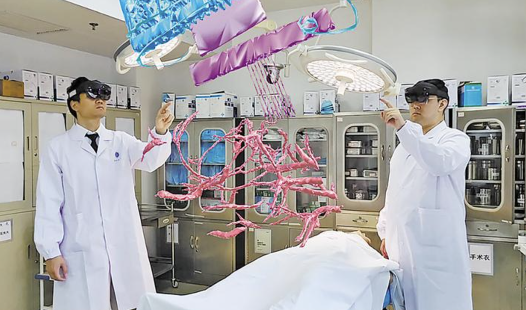 戴上一副MR(混合现实)眼镜,立刻拥有一双透视眼“穿透”颅骨和脑组织,脑机接口电极与大脑皮层、脑部血管的三维空间位置关系“纤毫毕现”呈现在眼前。