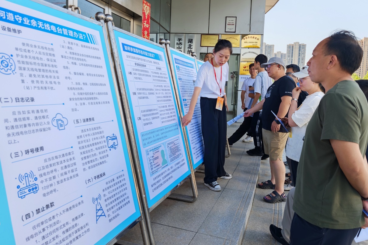 考试期间,孝感监测站同步开展了无线电法规宣传与反电诈科普活动。考场外设置“业余无线电台申请流程”“违法违规设台典型案例”等宣传展板,发放《业余无线电台管理办法》及依法设台流程资料,现场解答政策咨询,普及“黑广播”“伪基站”及GoIP设备防范知识,号召业余无线电爱好者共同参与,助力维护良好空中电波秩序。