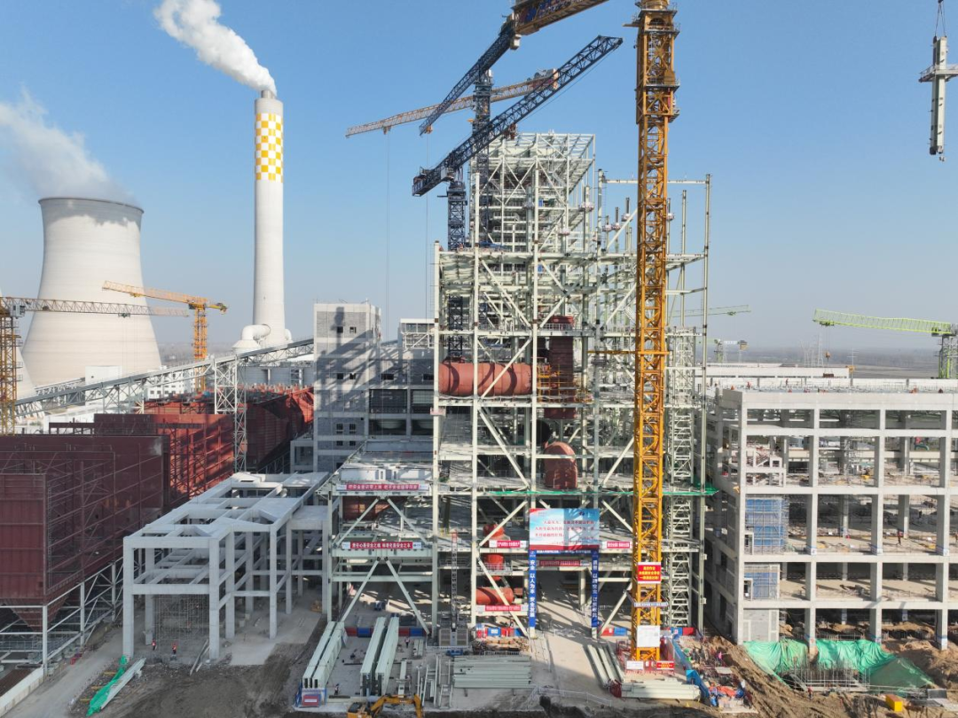 目前,项目烟囱外筒已结顶,全厂建筑物结构已完成90%,#3锅炉钢筋吊装完成,进入设备的安装阶段,#4锅炉钢架吊装完成80%。项目投运后,预计年产值突破60亿元、年税收达5亿元,为高质量发展注入强劲动力。