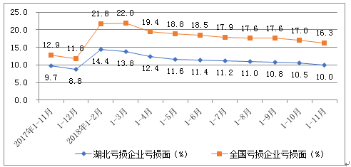 图4 全国和湖北各月累计亏损企业亏损面