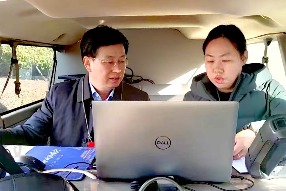 黄敏鸿(左)了解保障监测情况
