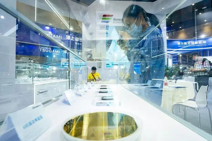 第19届光博会展出的晶圆等硬核产品。(湖北日报全媒记者 魏铼 摄)