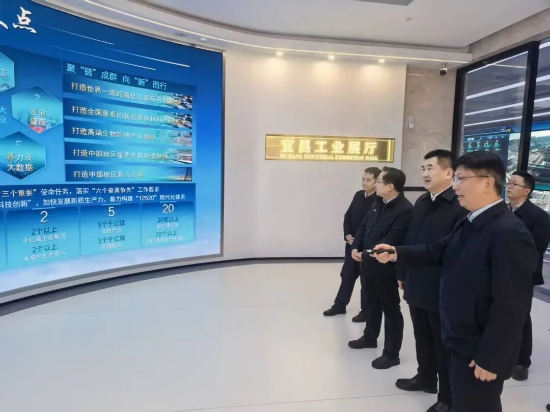 宜昌工业展厅,朱万奎认真听取地方经信部门关于全市产业布局、科技创新、项目投资、龙头企业培育等情况介绍,勉励宜昌持续发挥优势,深化科技创新与产业创新,加快重点项目建设,培育壮大链主企业,做大做强磷化工、新能源新材料、高端生物制造等优势产业,为全省做大做强“51020”先进制造业产业集群贡献更大力量。