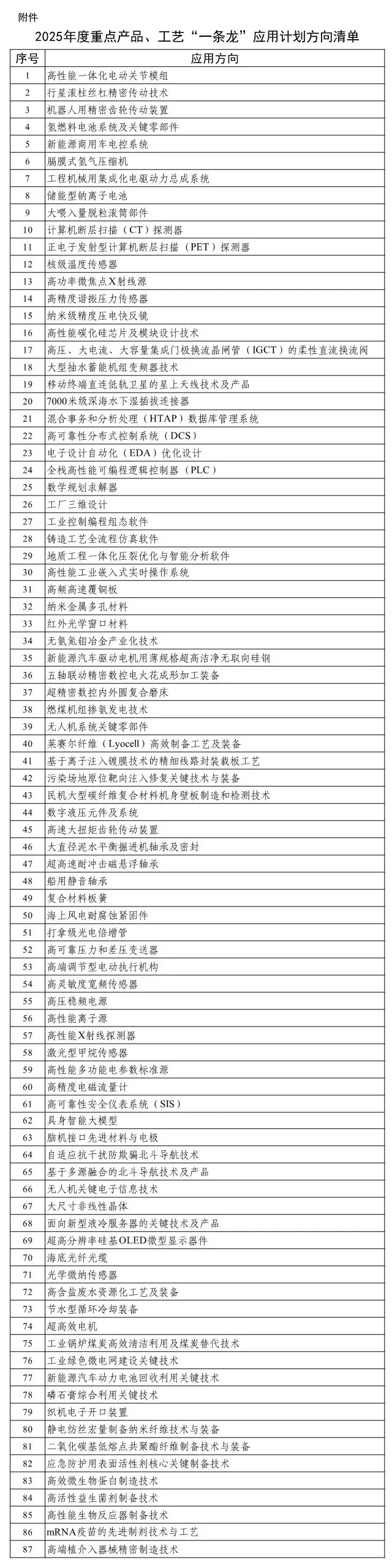 附件:2025年度重点产品、工艺“一条龙”应用计划方向清单