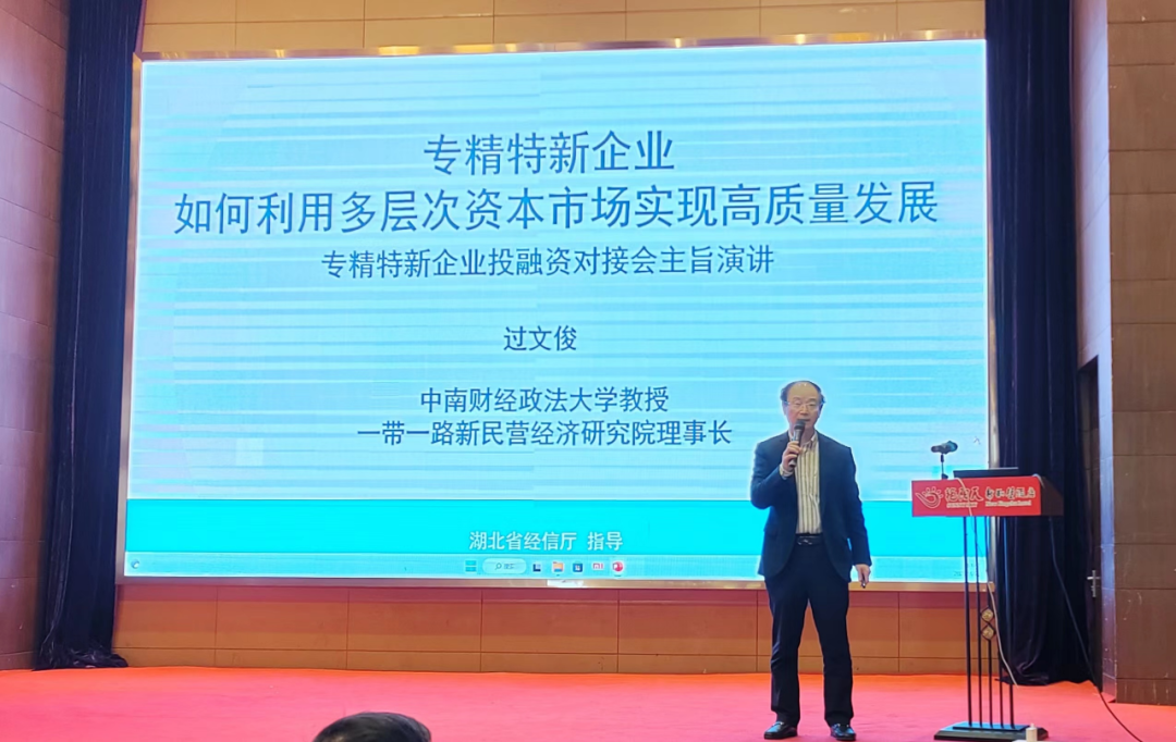 会上,中南财经政法大学过文俊教授从梳理支持中小企业专精特新发展政策入手,讲述了专精特新中小企业如何拓宽融资渠道、如何促进多层次资本市场互联互通以及专精特新中小企业挂牌与上市的衔接,为大家带来了一场“专精特新企业如何借力资本市场实现快速发展”的主题盛宴。